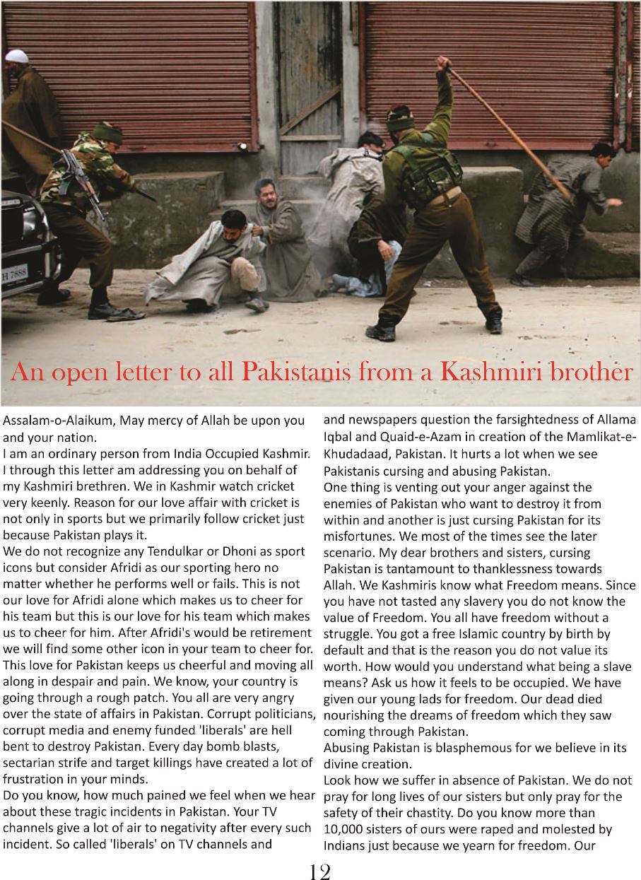 An open letter to all #Pakistanis from a #Kashmiri brother By Editor on 20th April 2013 • ( 0 ) Discover more from Voice of East Subscribe to get the latest posts sent to your email. Type your email… Subscribe Share this:Tweet Click to share on Telegram (Opens in new window) Telegram Click to share on Mastodon (Opens in new window) Mastodon Click to share on Bluesky (Opens in new window) Bluesky Click to share on Threads (Opens in new window) Threads Click to share on Reddit (Opens in new window) Reddit Click to share on Nextdoor (Opens in new window) Nextdoor Pocket Click to share on WhatsApp (Opens in new window) WhatsApp Share on Tumblr Click to email a link to a friend (Opens in new window) Email Like Loading...‹ فرقہ واریت ۔ وجوہات۔ علاج ۔ قرآن کے تناظر میں – حصہ اولفرقہ واریت۔ وجوہات ۔ علاج ۔ قرآن کے تناظر میں ۔ حصہ دوم ›Categories: Current Affairs, Kashmir, OpinionTags: current affairs, Geopolitics, Pakistan, Pakistani Media Related Articles What Does Pakistan Gain By Its Meek Posture At Ufa? I Take India As My Teacher بھارتی جارحیت اور حکومت پاکستان کا “مثالی صبر” ۔ Pakistani Youth Pledges to Continue Support to Kashmiris