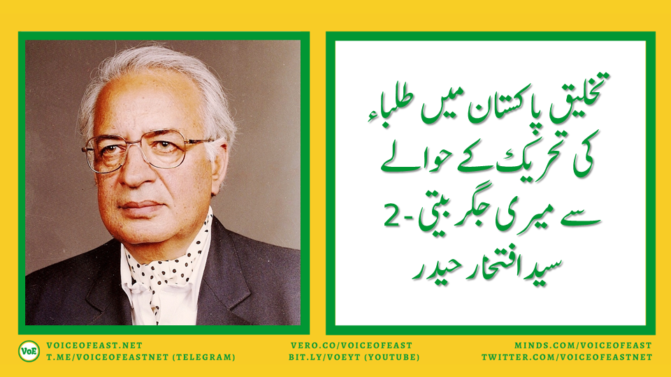 جوان جذبوں کی جوان یادیں -1 جوان جذبوں کی جوان یادیں 2 تخلیق پاکستان میں طلباء کی تحریک کے حوالے سے میری جگر بیتی سید افتخار حیدر Discover more from Voice of East Subscribe to get the latest posts sent … Continue reading جوان جذبوں کی جوان یادیں – 2