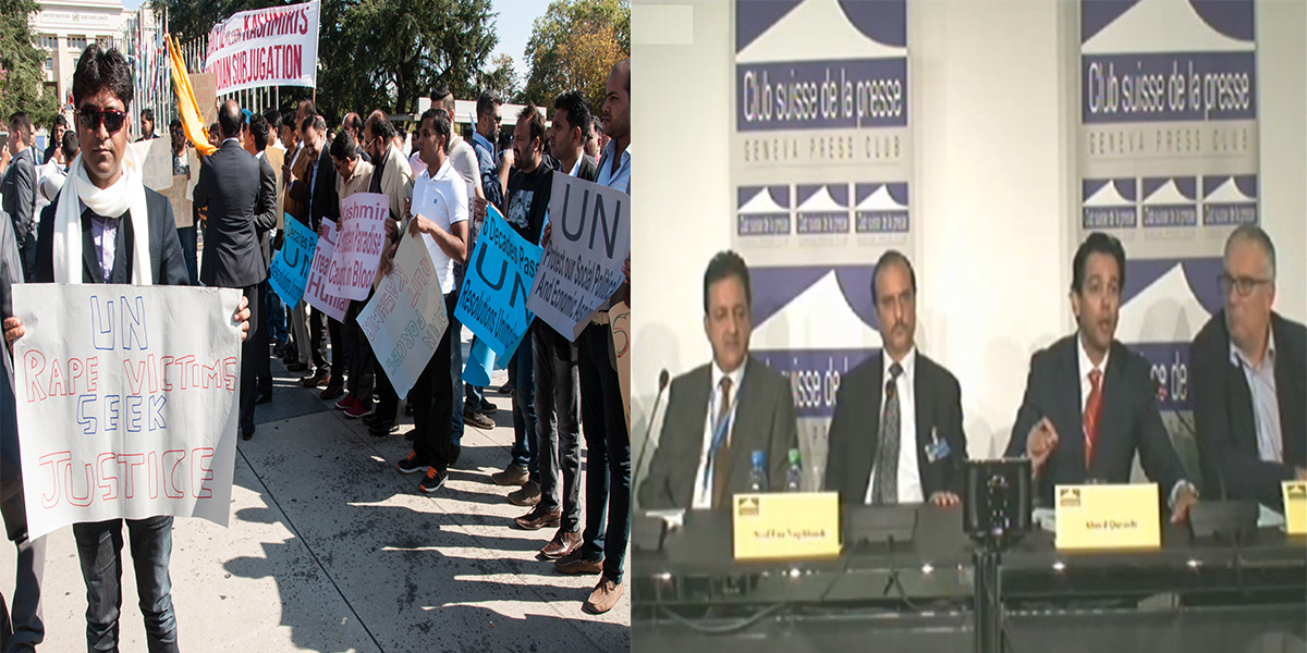 GENEVA, Switzerland—Kashmiri and Pakistani delegates attending the 27th Session of UN Human Rights Council, organized a Seminar, Press Conference and Demonstration. Kashmir faired prominently in Europe this week when hundreds of Kashmiris from across the continent descended on United Nations Headquarters in Geneva to hold a major protest demonstration. People from all walks of life participated in protest against India’s explicit lack of interest and failure to help Kashmiris stranded in the worst flooding in a century. India’s stubborn attitude and noncooperation with UN on cases of ‘disappeared’ Kashmiris, and New Delhi’s continued military occupation in Jammu and Kashmir in violation of UN Security Council resolutions.