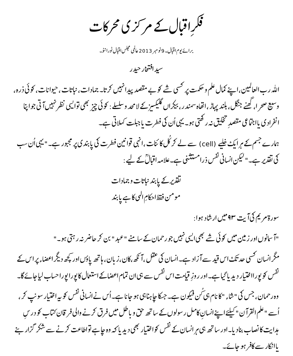 فکرِاقبال کے مرکزی محرکات