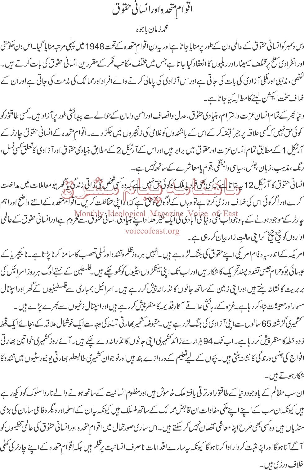 اقوام متحدہ اور انسانی حقوق By Editor on 10th December 2014 اقوام متحدہ اور انسانی حقوق محمد زمان باجوہ Discover more from Voice of East Subscribe to get the latest posts sent to your email. Type your email… Subscribe Share this:Tweet Click to share on Telegram (Opens in new window) Telegram Click to share on Mastodon (Opens in new window) Mastodon Click to share on Bluesky (Opens in new window) Bluesky Click to share on Threads (Opens in new window) Threads Click to share on Reddit (Opens in new window) Reddit Click to share on Nextdoor (Opens in new window) Nextdoor Pocket Click to share on WhatsApp (Opens in new window) WhatsApp Share on Tumblr Click to email a link to a friend (Opens in new window) Email Like Loading...‹ کشمیر اور عالمی یومِ انسانی حقوقA ‘Kashmir Stall’ In Islamabad On World Human Rights Day ›Categories: AnalysisTags: Indian Occupied Kashmir, Kashmir, UN, کشمیر, اقوام متحدہ, انسانی حقوق Related Articles Turkish Curriculum’s Renaming Of Central Asia To Turkistan Is Turkiye’s Latest Soft Power Flex “Muslim NATO” Or Multipolar Hedge? Iran’s Bid To Enter Saudi-Pakistan Defence Pact Poland’s Balancing Act: Nawrocki On Zelensky, Russia, And Trump The EU’s New Policy Towards Russia’s Seized Assets Isn’t About Helping Ukraine