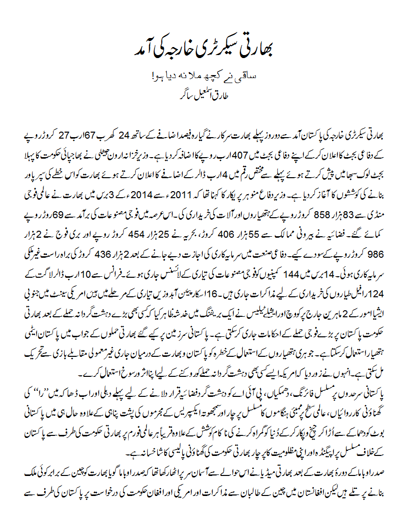 بھارتی سیکرٹری خارجہ کی آمد