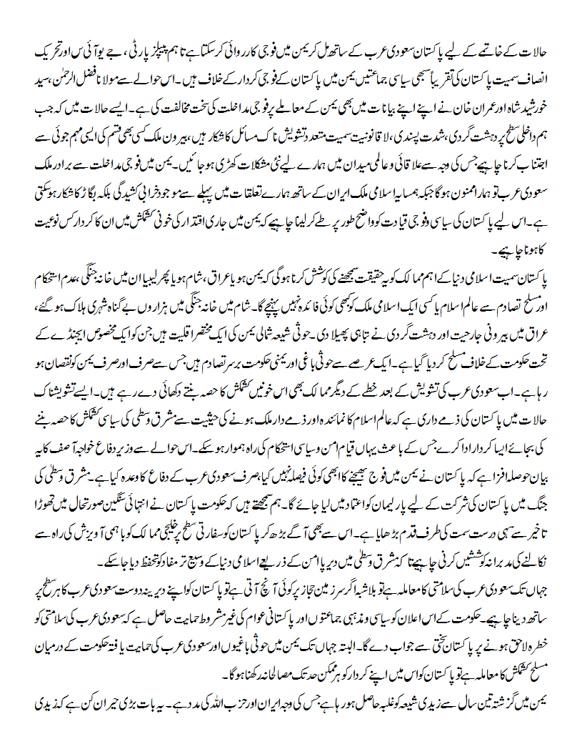 یمن ہو یا عراق، شام ہو یا پھر لیبیا ان میں خانہ جنگی، عدم استحکام اورمسلح تصادم سے عالم اسلام یا کسی ایک اسلامی ملک کوکبھی کوئی فائدہ نہیں پہنچے گا۔
