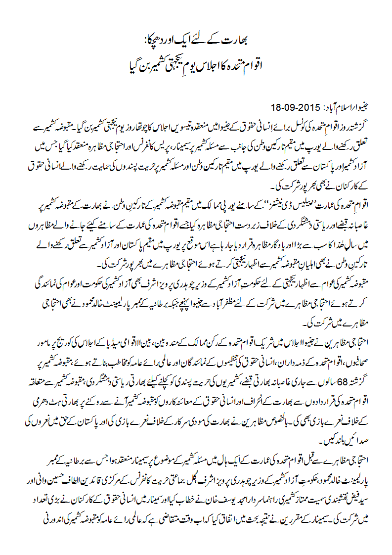 بھارت کے لئے ایک اور دھچکا: اقوام متحدہ کا اجلاس یومِ یکجہتی کشمیر بن گیا