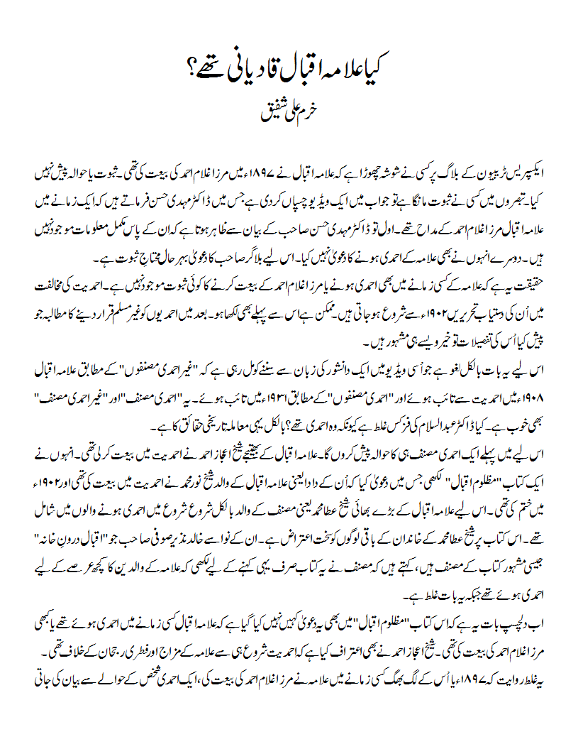 علامہ اقبال کبھی احمدی نہیں تھے اور نہ ہی مرزا غلام احمد کی بیعت کی تھی