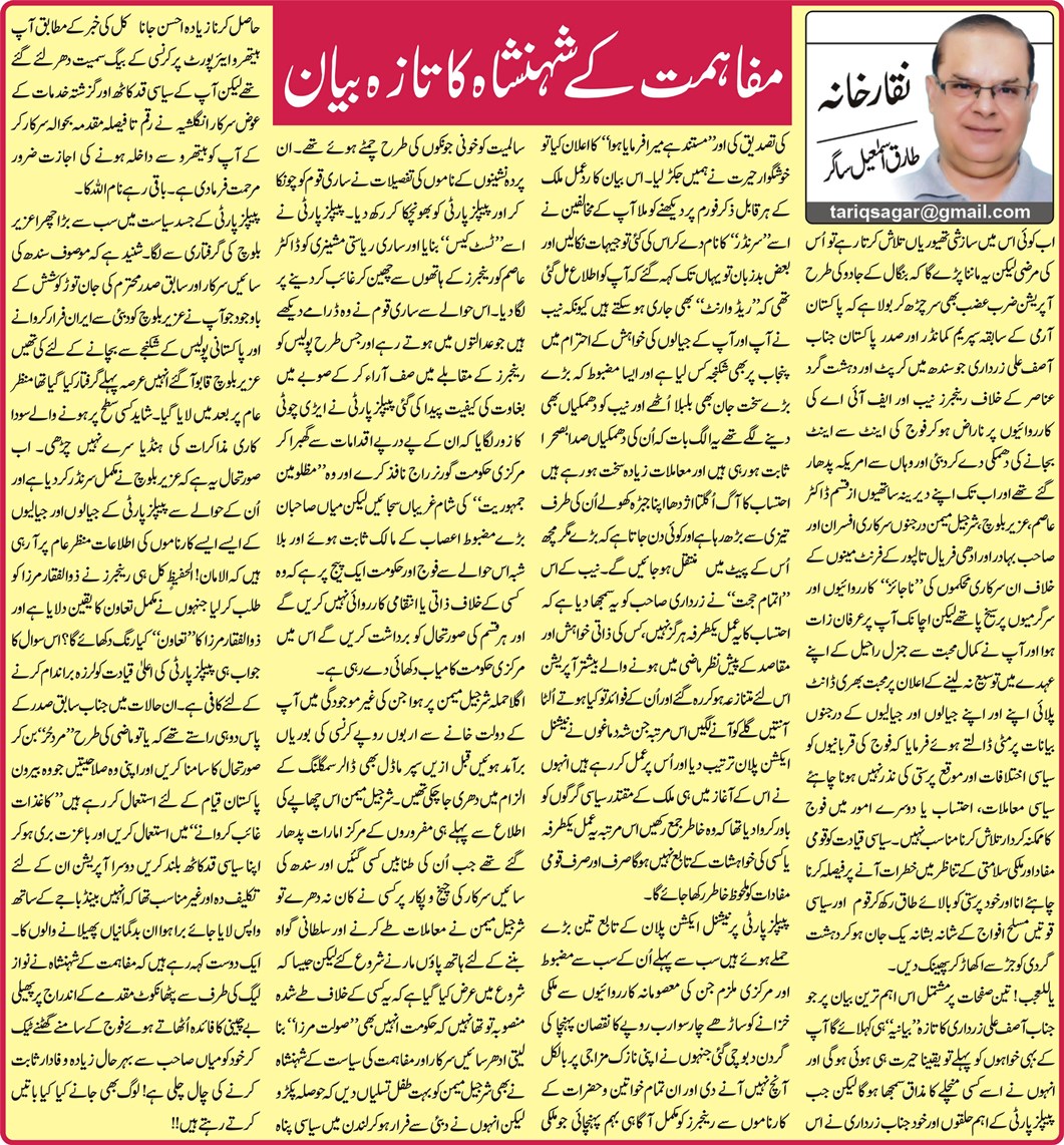 مفاہمت کے شہنشاہ کا تازہ بیان