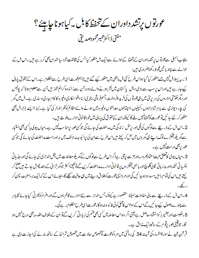 عورتوں پر تشدد اور ان کے تحفظ کا بل ۔ کیا ہونا چاہیے؟