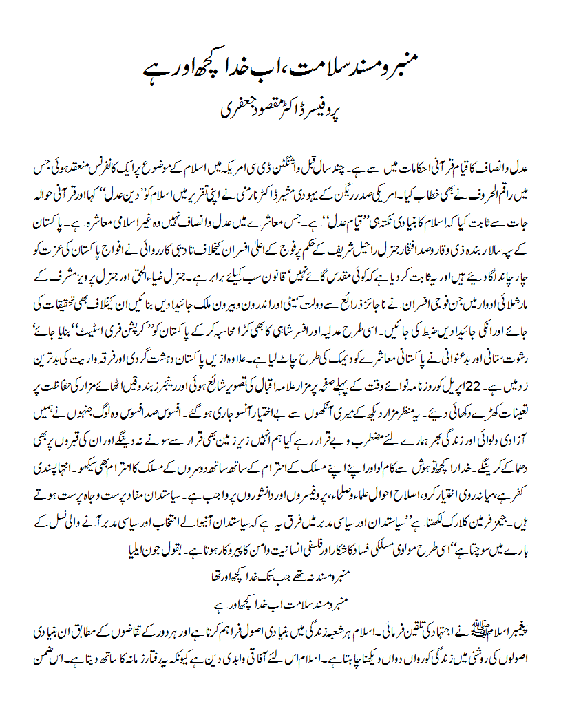منبر و مسند سلامت ، اب خدا کچھ اور ہے