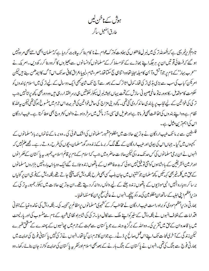 ہوش کے ناخن لیں By Editor on 18th July 2016 • ( 0 ) ہوش کے ناخن لیں طارق اسماعیل ساگر Discover more from Voice of East Subscribe to get the latest posts sent to your email. Type your email… Subscribe Share this:Tweet Click to share on Telegram (Opens in new window) Telegram Click to share on Mastodon (Opens in new window) Mastodon Click to share on Bluesky (Opens in new window) Bluesky Click to share on Threads (Opens in new window) Threads Click to share on Reddit (Opens in new window) Reddit Click to share on Nextdoor (Opens in new window) Nextdoor Pocket Click to share on WhatsApp (Opens in new window) WhatsApp Share on Tumblr Click to email a link to a friend (Opens in new window) Email Like Loading...‹ خون ہو جاتا ہے میری حسرت تعمیر کاKashmiri Americans Protest Against Indian Atrocities ›Categories: Analysis, GeopoliticsTags: پاکستان, اردو, اسلام, ترکی Related Articles Kazakhstan Might Have Just Placed Itself On An Irreversible Collision Course With Russia Turkish Curriculum’s Renaming Of Central Asia To Turkistan Is Turkiye’s Latest Soft Power Flex “Muslim NATO” Or Multipolar Hedge? Iran’s Bid To Enter Saudi-Pakistan Defence Pact Poland’s Balancing Act: Nawrocki On Zelensky, Russia, And Trump