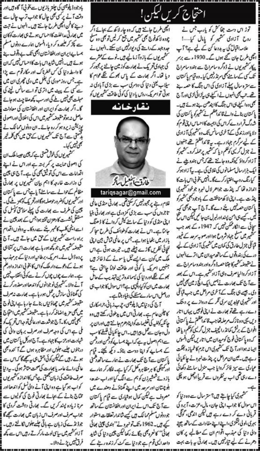 احتجاج کریں لیکن By Editor on 22nd July 2016 • ( 0 ) احتجاج کریں لیکن طارق اسماعیل ساگر Discover more from Voice of East Subscribe to get the latest posts sent to your email. Type your email… Subscribe Share this:Tweet Click to share on Telegram (Opens in new window) Telegram Click to share on Mastodon (Opens in new window) Mastodon Click to share on Bluesky (Opens in new window) Bluesky Click to share on Threads (Opens in new window) Threads Click to share on Reddit (Opens in new window) Reddit Click to share on Nextdoor (Opens in new window) Nextdoor Pocket Click to share on WhatsApp (Opens in new window) WhatsApp Share on Tumblr Click to email a link to a friend (Opens in new window) Email Like Loading...‹ Pakistan Needs To Be Proactive On Jammu And KashmirQuran vs Hadith – Part 3 ›Categories: Analysis, KashmirTags: کشمیر, پاکستان, بھارت Related Articles The G7’s Silent Complicity: Kashmir And The Cost Of Ignoring Modi Kashmir: Interpreting Trump’s Reaction To The Pahalgam Terrorist Attack World Powers Can Arrest The Course Of Brutalities In Kashmir Kashmir: A Symbol of Multiculturalism