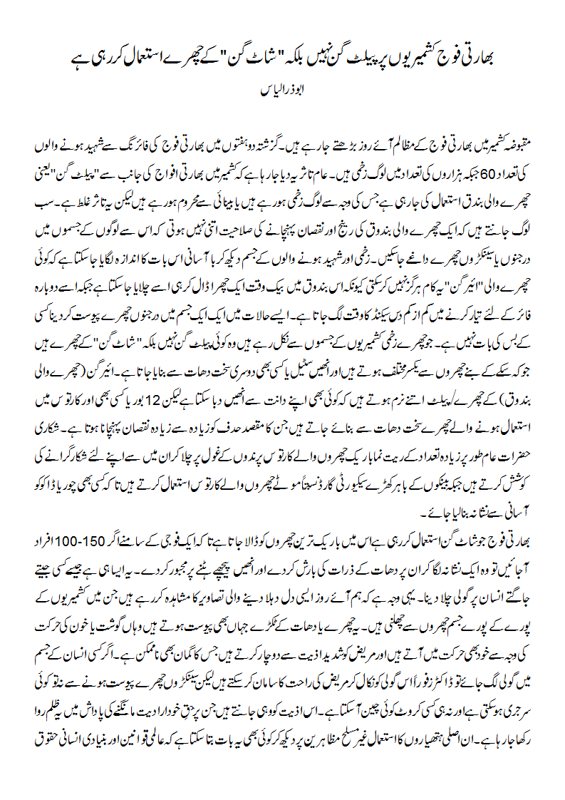 بھارتی فوج کشمیریوں پر پیلٹ گن نہیں بلکہ “شاٹ گن”کے چھرے استعمال کر رہی ہے