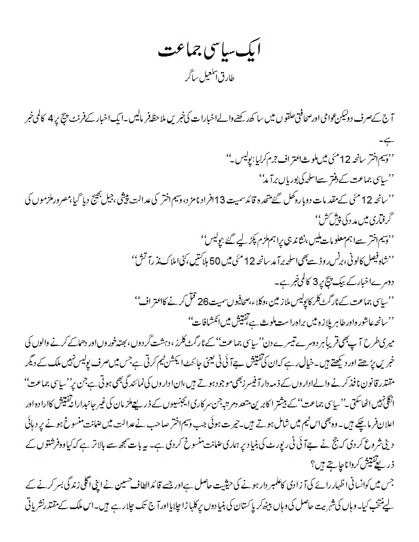 ایک سیاسی جماعت By Editor on 28th July 2016 • ( 0 ) ایک سیاسی جماعت طارق اسماعیل ساگر Discover more from Voice of East Subscribe to get the latest posts sent to your email. Type your email… Subscribe Share this:Tweet Click to share on Telegram (Opens in new window) Telegram Click to share on Mastodon (Opens in new window) Mastodon Click to share on Bluesky (Opens in new window) Bluesky Click to share on Threads (Opens in new window) Threads Click to share on Reddit (Opens in new window) Reddit Click to share on Nextdoor (Opens in new window) Nextdoor Pocket Click to share on WhatsApp (Opens in new window) WhatsApp Share on Tumblr Click to email a link to a friend (Opens in new window) Email Like Loading...‹ پہلےاللہ پھر بیٹا، پہلےقرآن پھر بیٹا، پہلے محمد رسول اللہ ﷺ، پھر بیٹاHow JuD Can Sabotage Kashmir’s Indigenous Struggle For Freedom ›Categories: Analysis, Current AffairsTags: current affairs, Democracy, Pakistan, پاکستان, ایم کیو ایم Related Articles Analysing Rana Sanaullah’s Speculation That India Wants To Assassinate Imran Khan Was Arshad Sharif Assassinated By Pakistan’s US-Backed Post-Modern Coup Regime? How Bajwa And Co. Pushed Pak Army Into A Corner, But The Rivals Are Dumb And Dumber Interpreting The Pakistani Media Regulator’s Ban On Imran Khan’s Live Broadcasts