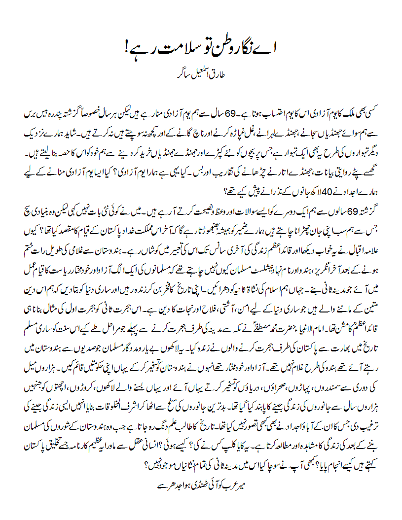 اے نگار وطن تو سلامت رہے By Editor on 16th August 2016 • ( 0 ) اے نگار وطن تو سلامت رہے طارق اسماعیل ساگر Discover more from Voice of East Subscribe to get the latest posts sent to your email. Type your email… Subscribe Share this:Tweet Click to share on Telegram (Opens in new window) Telegram Click to share on Mastodon (Opens in new window) Mastodon Click to share on Bluesky (Opens in new window) Bluesky Click to share on Threads (Opens in new window) Threads Click to share on Reddit (Opens in new window) Reddit Click to share on Nextdoor (Opens in new window) Nextdoor Pocket Click to share on WhatsApp (Opens in new window) WhatsApp Share on Tumblr Click to email a link to a friend (Opens in new window) Email Like Loading...‹ اے مرد مجاہد جاگ ذراOf Indian Delusions And Nationalist Propaganda ›Categories: OpinionTags: Allama Iqbal, Islam, Muslims, Pakistan, Quaid-e-Azam, پاکستان, اردو, اسلام Related Articles Why Pakistan Needs Democracy Will Kashmir’s Liberation Trigger India’s Disintegration? The Truce Broken Twice: From Medina To Gaza, Lessons In Betrayal And Resistance When An Expat Kashmiri Met A Pandit In Northern Virginia
