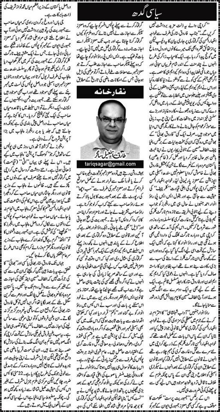 سیاسی گدھ By Editor on 18th September 2016 • ( 0 ) سیاسی گدھ طارق اسماعیل ساگر Discover more from Voice of East Subscribe to get the latest posts sent to your email. Type your email… Subscribe Share this:Tweet Click to share on Telegram (Opens in new window) Telegram Click to share on Mastodon (Opens in new window) Mastodon Click to share on Bluesky (Opens in new window) Bluesky Click to share on Threads (Opens in new window) Threads Click to share on Reddit (Opens in new window) Reddit Click to share on Nextdoor (Opens in new window) Nextdoor Pocket Click to share on WhatsApp (Opens in new window) WhatsApp Share on Tumblr Click to email a link to a friend (Opens in new window) Email Like Loading...‹ اشرف غنی کی تازہ دھمکیکارِسرکارمیں مداخلت ›Categories: Analysis, Current AffairsTags: current affairs, Pakistan, پاکستان Related Articles Analysing Rana Sanaullah’s Speculation That India Wants To Assassinate Imran Khan Was Arshad Sharif Assassinated By Pakistan’s US-Backed Post-Modern Coup Regime? How Bajwa And Co. Pushed Pak Army Into A Corner, But The Rivals Are Dumb And Dumber Interpreting The Pakistani Media Regulator’s Ban On Imran Khan’s Live Broadcasts