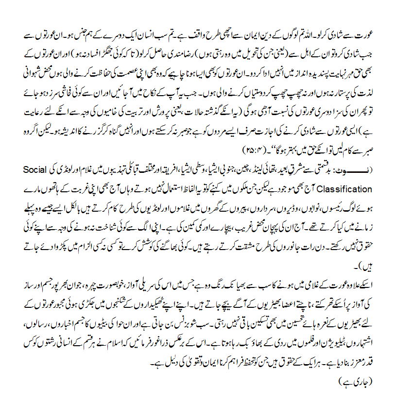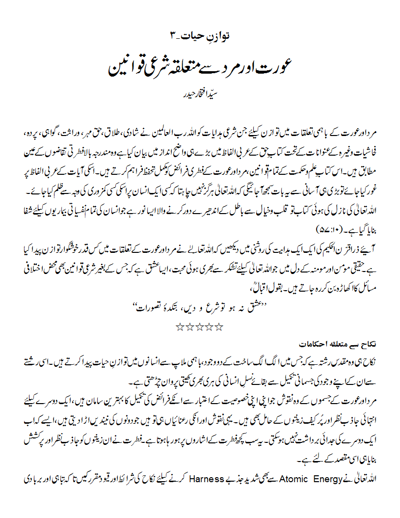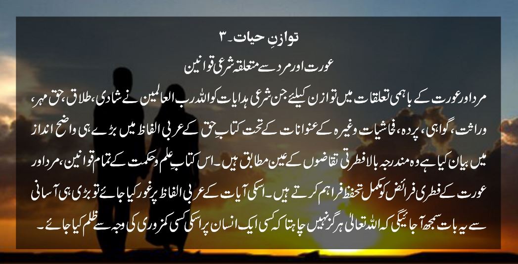 اسلام میں مرد اور عورت کے حقوق و فرائض کا باہمی توازن – 3
