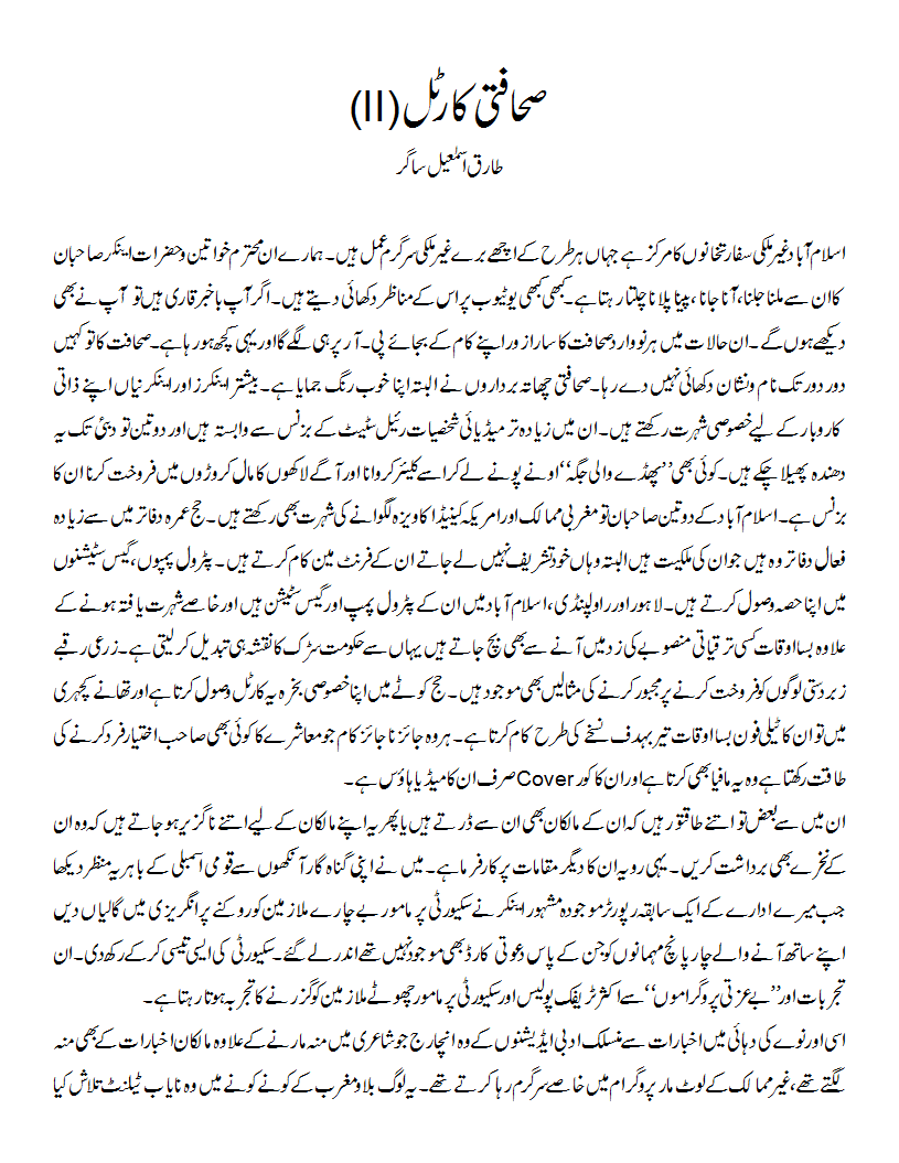 2 صحافتی کارٹل By Editor on 21st November 2016 • ( 0 ) صحافتی کارٹل 2 طارق اسماعیل ساگر Discover more from Voice of East Subscribe to get the latest posts sent to your email. Type your email… Subscribe Share this:Tweet Click to share on Telegram (Opens in new window) Telegram Click to share on Mastodon (Opens in new window) Mastodon Click to share on Bluesky (Opens in new window) Bluesky Click to share on Threads (Opens in new window) Threads Click to share on Reddit (Opens in new window) Reddit Click to share on Nextdoor (Opens in new window) Nextdoor Pocket Click to share on WhatsApp (Opens in new window) WhatsApp Share on Tumblr Click to email a link to a friend (Opens in new window) Email Like Loading...‹ قانون کی حکمرانی باعث شادمانیبھارتی بحری جارحیت کا پس منظر ›Categories: Analysis, Current AffairsTags: Pakistan, Pakistani Media, پاکستان, پاکستانی صحافت Related Articles Analysing Rana Sanaullah’s Speculation That India Wants To Assassinate Imran Khan Was Arshad Sharif Assassinated By Pakistan’s US-Backed Post-Modern Coup Regime? How Bajwa And Co. Pushed Pak Army Into A Corner, But The Rivals Are Dumb And Dumber Interpreting The Pakistani Media Regulator’s Ban On Imran Khan’s Live Broadcasts