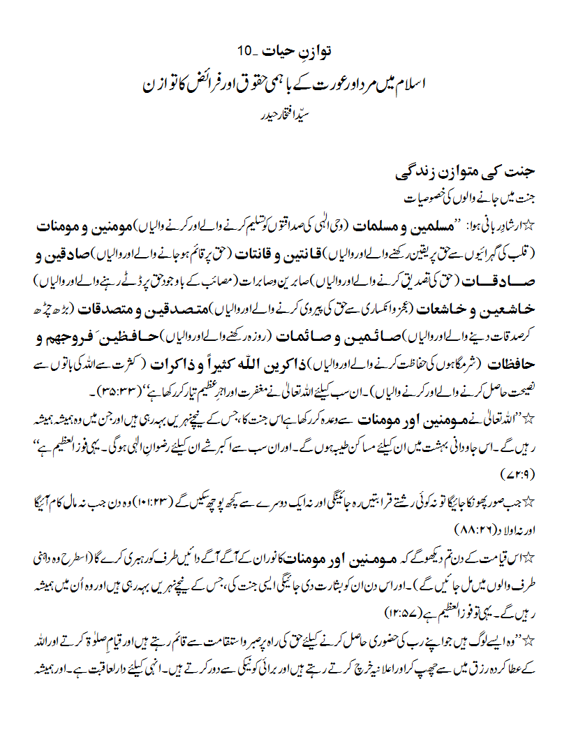 اسلام میں مرد اور عورت کے حقوق و فرائض کا باہمی توازن 10