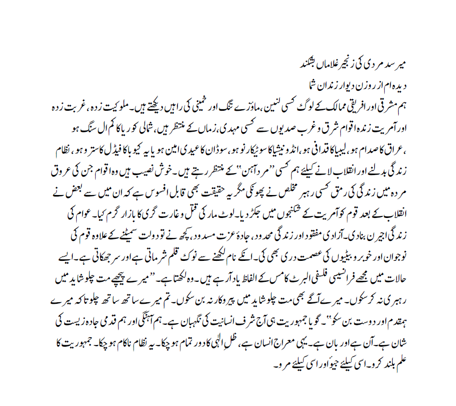 یکایک ہر بلند آواز پہنچائی نہیں جاتی By Editor on 22nd January 2017 • ( 0 ) یکایک ہر بلند آواز پہنچائی نہیں جاتی پروفیسر ڈاکٹر مقصود جعفری Discover more from Voice of East Subscribe to get the latest posts sent to your email. Type your email… Subscribe Share this:Tweet Click to share on Telegram (Opens in new window) Telegram Click to share on Mastodon (Opens in new window) Mastodon Click to share on Bluesky (Opens in new window) Bluesky Click to share on Threads (Opens in new window) Threads Click to share on Reddit (Opens in new window) Reddit Click to share on Nextdoor (Opens in new window) Nextdoor Pocket Click to share on WhatsApp (Opens in new window) WhatsApp Share on Tumblr Click to email a link to a friend (Opens in new window) Email Like Loading...‹ اسلام میں مرد اور عورت کے حقوق و فرائض کا باہمی توازن 10آپ مانیں گے نہیں ›Categories: History, Islam, OpinionTags: Democracy, Pakistan, مسلمان, پاکستان, اسلام Related Articles میں مارکسی نہیں محمدی ؐہوں فرقہ بندی ہے کہیں اور کہیں ذاتیں ہیں عربی اور عجمی کی تفریق دفاع از حرمتِ رسول اللہ ﷺ