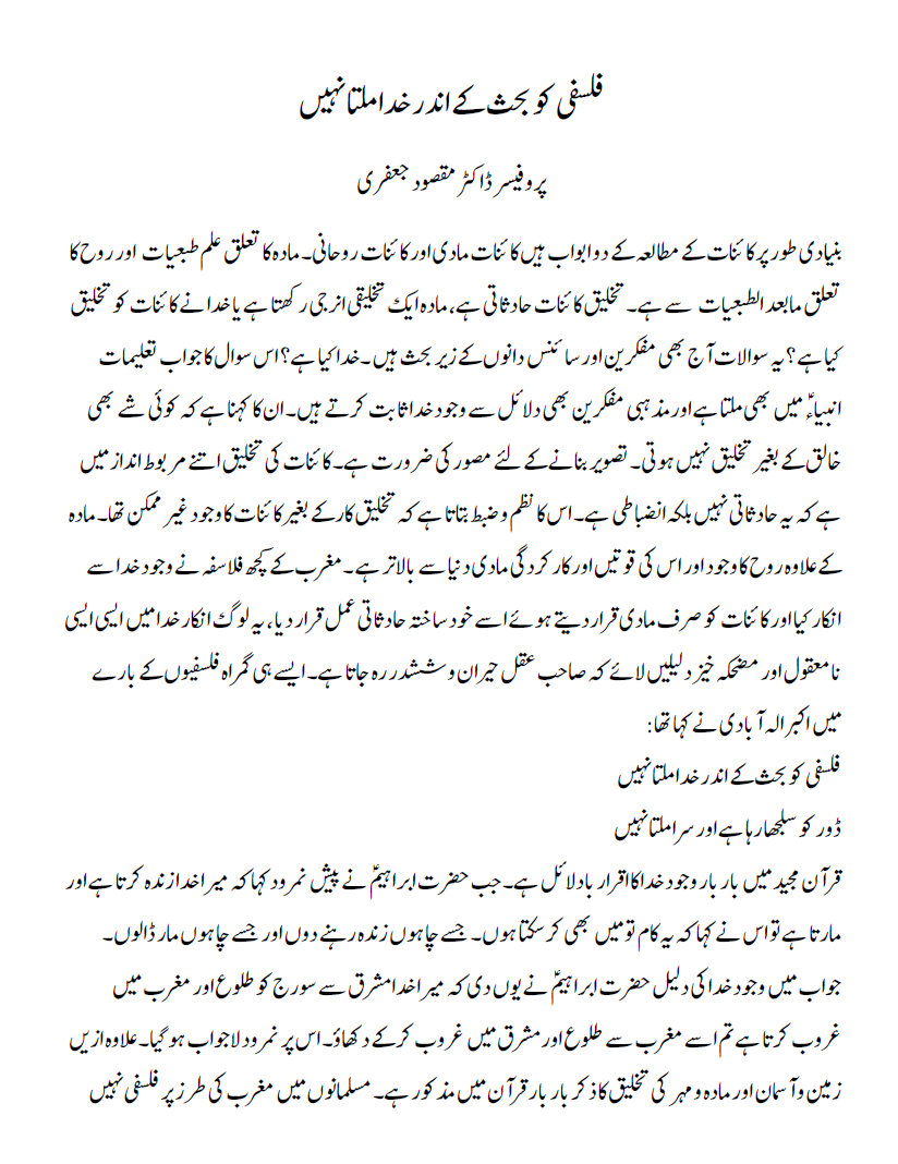فلسفی کو بحث کے اندر خدا ملتا نہیں
