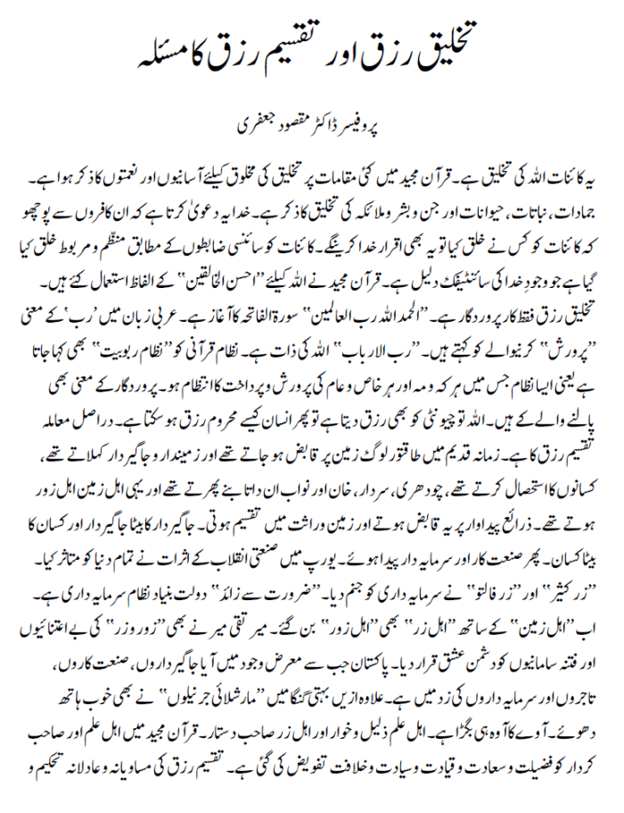 تخلیق رزق اور تقسیم رزق کا مسئلہ