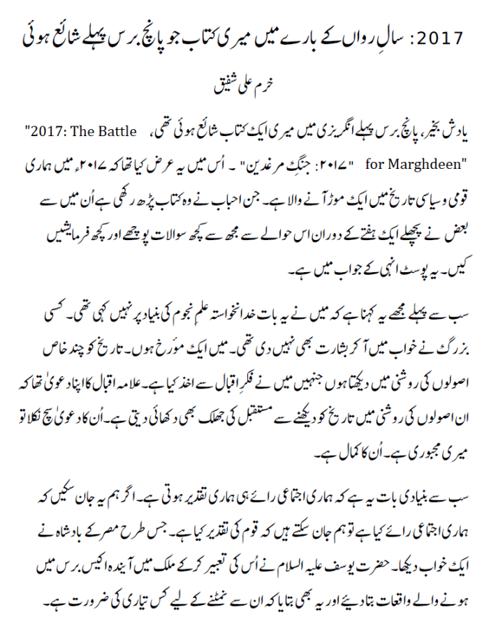 سالِ رواں 2017 کے بارے میں میری کتاب جو پانچ برس پہلے شائع ہوئی
