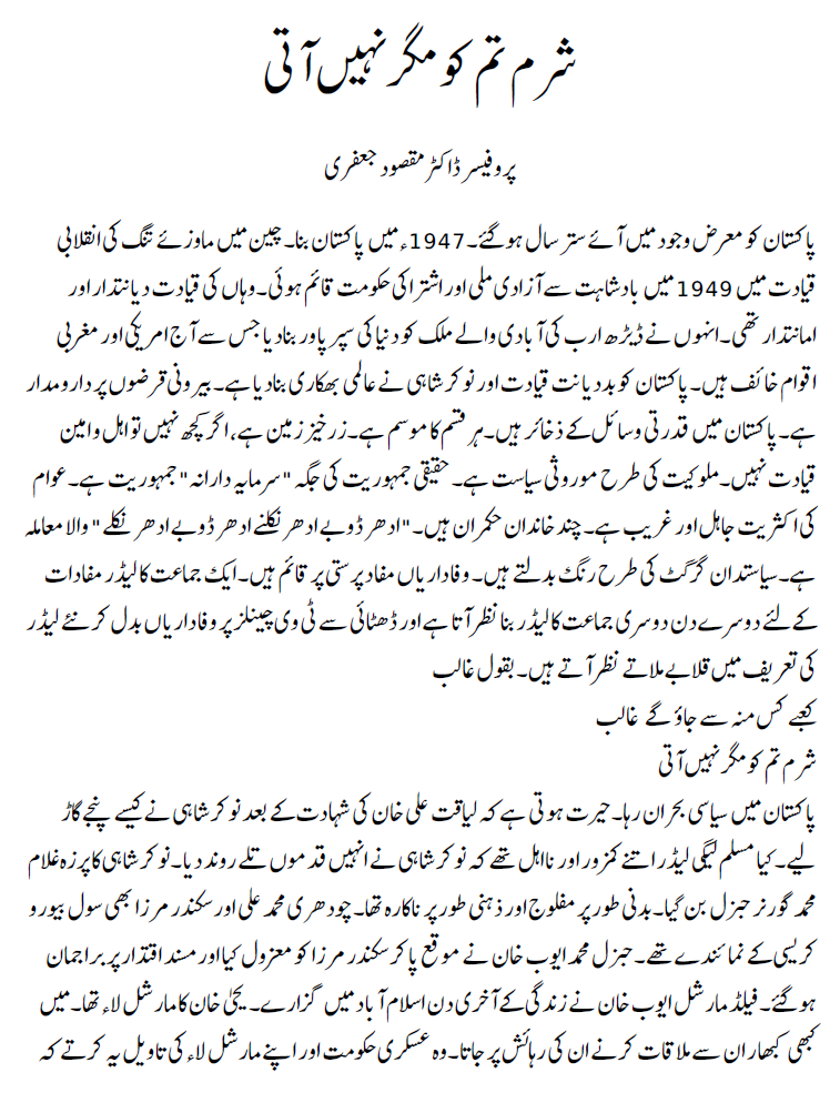 شرم تم کو مگر نہیں آتی By Editor on 20th August 2017 • ( 0 ) شرم تم کو مگر نہیں آتی پروفیسر ڈاکٹرمقصود جعفری Discover more from Voice of East Subscribe to get the latest posts sent to your email. Type your email… Subscribe Share this:Tweet Click to share on Telegram (Opens in new window) Telegram Click to share on Mastodon (Opens in new window) Mastodon Click to share on Bluesky (Opens in new window) Bluesky Click to share on Threads (Opens in new window) Threads Click to share on Reddit (Opens in new window) Reddit Click to share on Nextdoor (Opens in new window) Nextdoor Pocket Click to share on WhatsApp (Opens in new window) WhatsApp Share on Tumblr Click to email a link to a friend (Opens in new window) Email Like Loading...‹ ہماری سیاست اور صحافتThere is youth-led resistance in Kashmir: Barrister Sultan ›Categories: AnalysisTags: Islam, Pakistan, مسلمان, پاکستان, پاکستانی سیاست, اردو, اسلام Related Articles “Muslim NATO” Or Multipolar Hedge? Iran’s Bid To Enter Saudi-Pakistan Defence Pact Poland’s Balancing Act: Nawrocki On Zelensky, Russia, And Trump The EU’s New Policy Towards Russia’s Seized Assets Isn’t About Helping Ukraine Ukraine’s Anti-Corruption Investigation Appears To Be On The Brink Of Implicating Zelensky