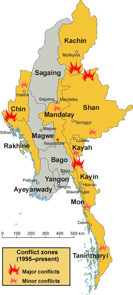 Their second largest insurgency is in Kayah state. Third largest is in Kayan state. Fourth is in Rakhine and fifth in Shan state. There are numerous other movements in Burma that keep Yangon occupied from time to time.