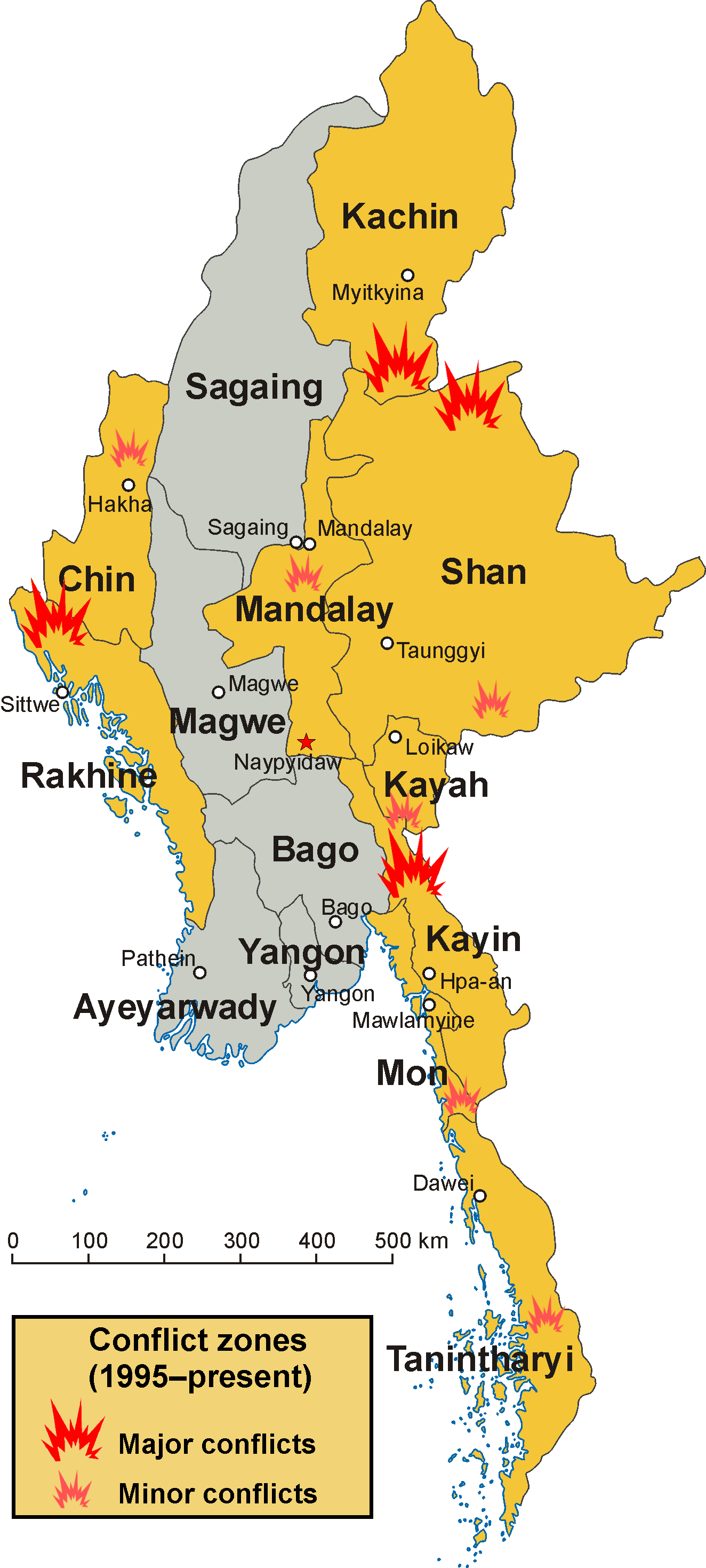 Their second largest insurgency is in Kayah state. Third largest is in Kayan state. Fourth is in Rakhine and fifth in Shan state. There are numerous other movements in Burma that keep Yangon occupied from time to time.