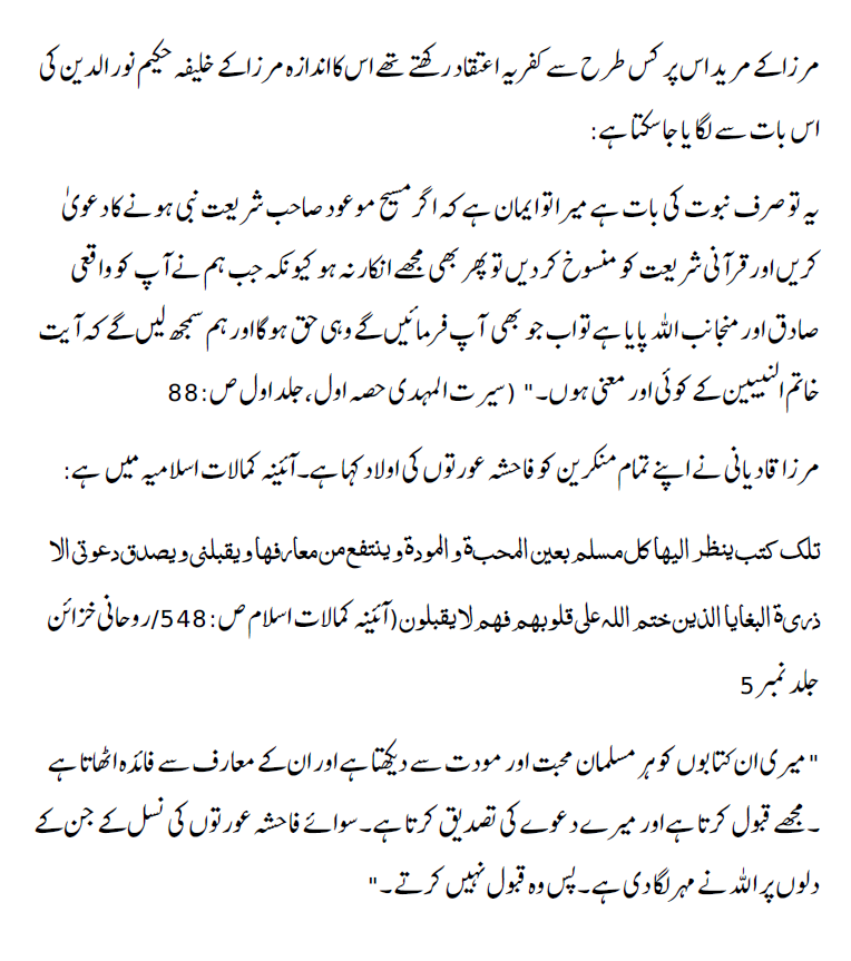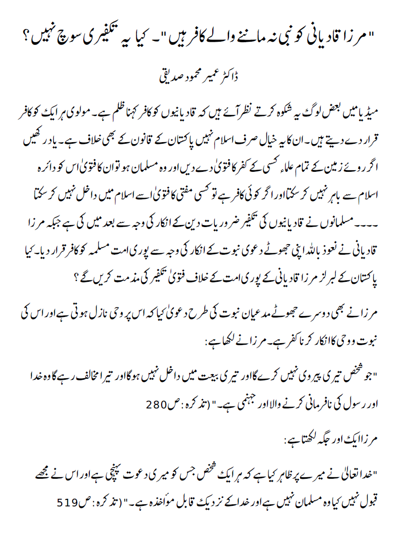 مرزا قادیانی کو نبی نہ ماننے والے کافر ہیں”۔ کیا یہ تکفیری سوچ نہیں ؟”
