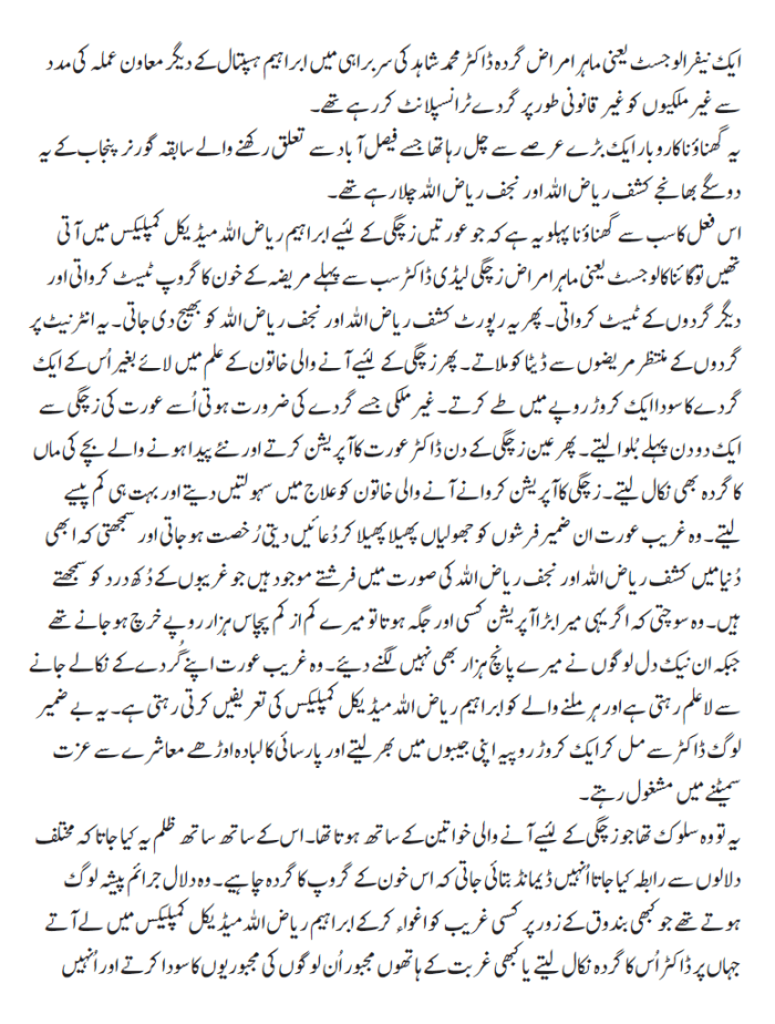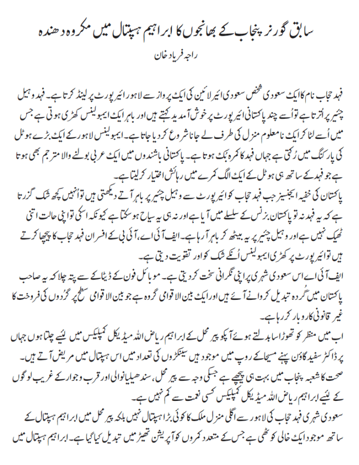 سابق گورنر پنجاب کے بھانجوں کا ابراہیم ہسپتال میں مکروہ دھندہ
