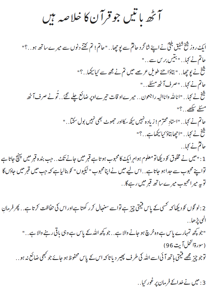 آٹھ باتیں جو قرآن کا خلاصہ ہیں