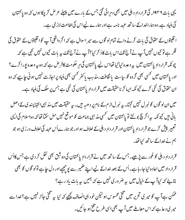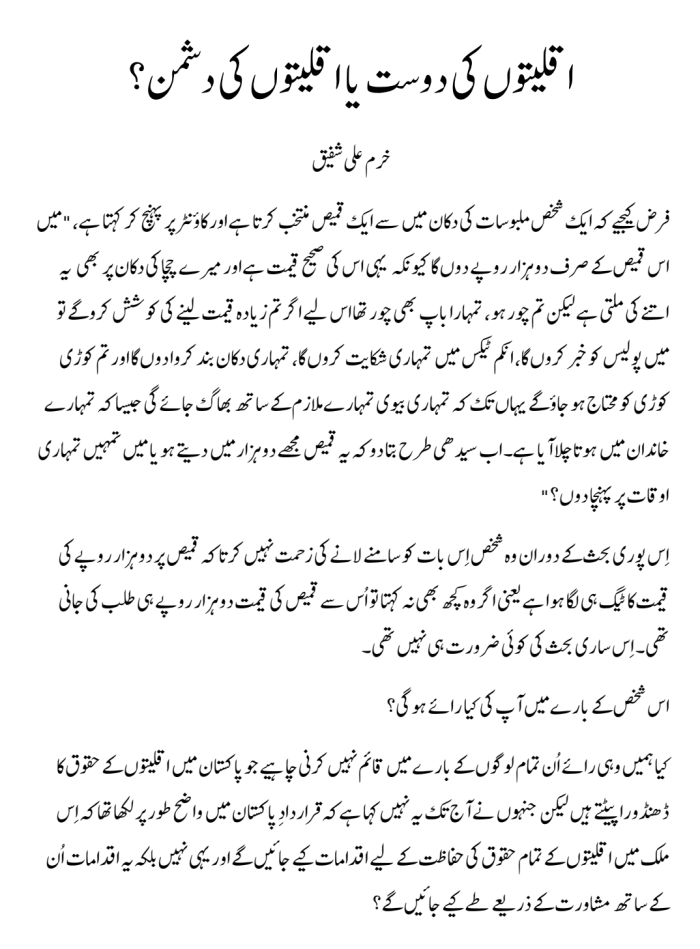 اقلیتوں کی دوست یا اقلیتوں کی دشمن؟ By Editor on 17th February 2018 • ( 0 ) اقلیتوں کی دوست یا اقلیتوں کی دشمن؟ خرم علی شفیق Discover more from Voice of East Subscribe to get the latest posts sent to your email. Type your email… Subscribe Share this:Tweet Click to share on Telegram (Opens in new window) Telegram Click to share on Mastodon (Opens in new window) Mastodon Click to share on Bluesky (Opens in new window) Bluesky Click to share on Threads (Opens in new window) Threads Click to share on Reddit (Opens in new window) Reddit Click to share on Nextdoor (Opens in new window) Nextdoor Pocket Click to share on WhatsApp (Opens in new window) WhatsApp Share on Tumblr Click to email a link to a friend (Opens in new window) Email Like Loading...‹ پاکستان کا سافٹ امیجدوا کے ساتھ دعا کو بھی لازمی جانو ›Categories: History, OpinionTags: Asma Jahangir, Muslims, Pakistan, مسلمان, پاکستان, اقلیت, اردو, اسلام Related Articles Plutocracy, Aristocracy and Bureaucracy has besieged us Why are Jews persecuted? فیض احمد فیض: سائے اور سراب Ghosts from the past