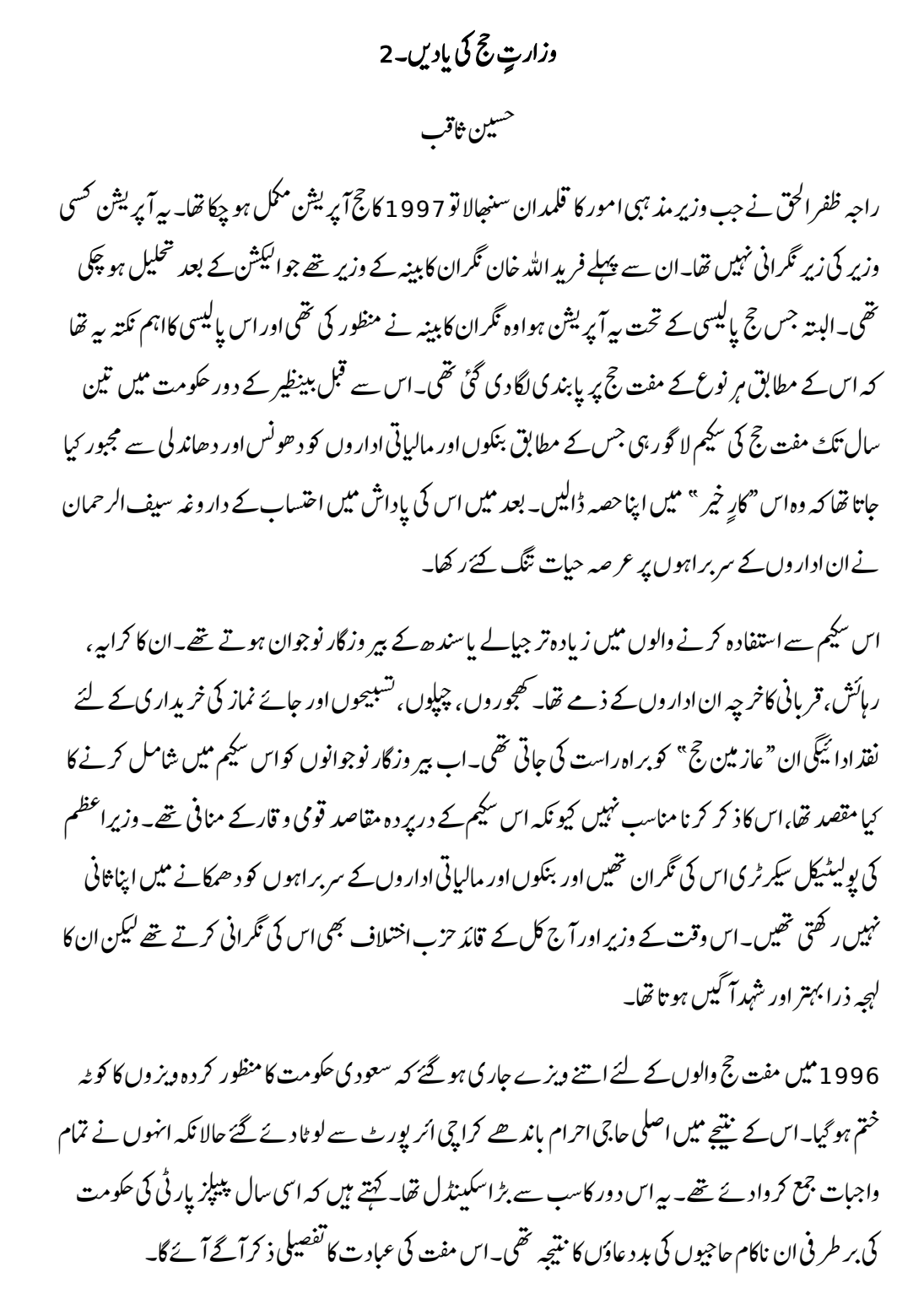 وزارتٍ حج کی یادیں۔2 By Editor on 2nd March 2018 • ( 0 ) وزارتٍ حج کی یادیں۔2 حسین ثاقب Discover more from Voice of East Subscribe to get the latest posts sent to your email. Type your email… Subscribe Share this:Tweet Click to share on Telegram (Opens in new window) Telegram Click to share on Mastodon (Opens in new window) Mastodon Click to share on Bluesky (Opens in new window) Bluesky Click to share on Threads (Opens in new window) Threads Click to share on Reddit (Opens in new window) Reddit Click to share on Nextdoor (Opens in new window) Nextdoor Pocket Click to share on WhatsApp (Opens in new window) WhatsApp Share on Tumblr Click to email a link to a friend (Opens in new window) Email Like Loading...‹ نو موراسلام یا اسلام آباد ›Categories: History, MemoirTags: Pakistan, Politicians, پاکستان, سیاست دان Related Articles …And I became a Palestinian وزارت حج کی یادیں ۔1 جوان جذبوں کی جوان یادیں – 2 جوان جذبوں کی جوان یادیں -1