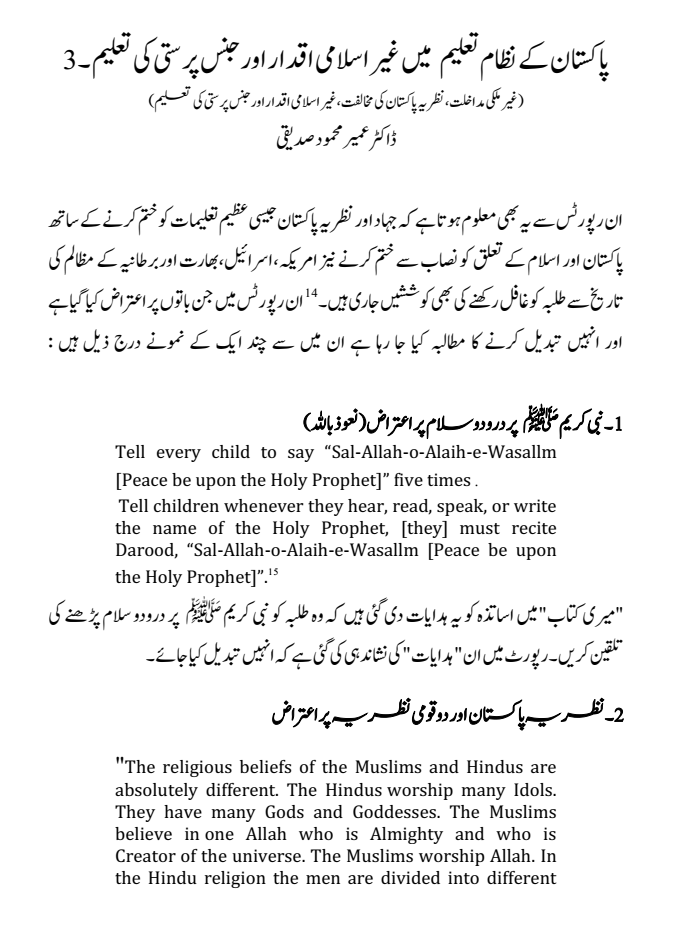 پاکستان کے نظام تعلیم میں غیر اسلامی اقدار اور جنس پرستی کی تعلیم۔3