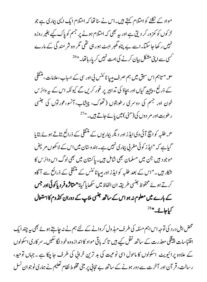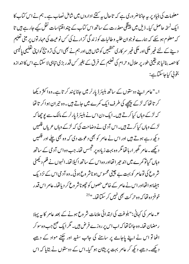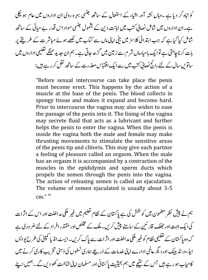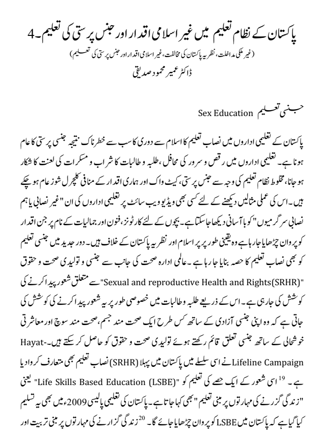 پاکستان کے نظام تعلیم میں غیر اسلامی اقدار اور جنس پرستی کی تعلیم۔4