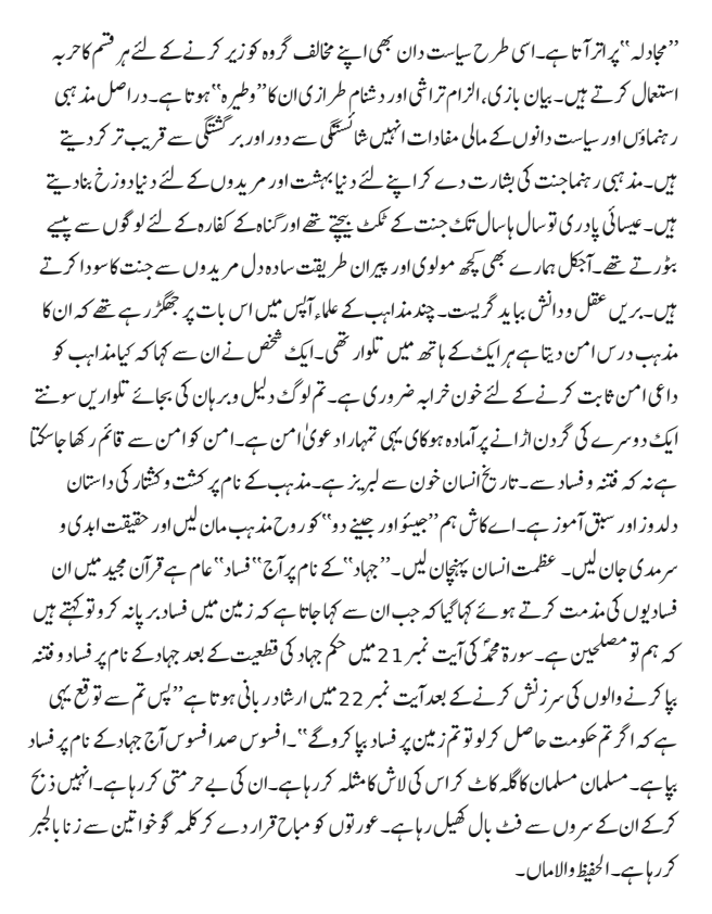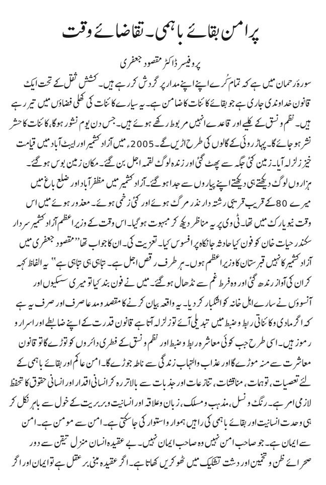 پرامن بقائے باہمی۔ تقاضائے وقت By Editor on 18th March 2018 • ( 0 ) پرامن بقائے باہمی۔ تقاضائے وقت پروفیسر ڈاکٹر مقصود جعفری Discover more from Voice of East Subscribe to get the latest posts sent to your email. Type your email… Subscribe Share this:Tweet Click to share on Telegram (Opens in new window) Telegram Click to share on Mastodon (Opens in new window) Mastodon Click to share on Bluesky (Opens in new window) Bluesky Click to share on Threads (Opens in new window) Threads Click to share on Reddit (Opens in new window) Reddit Click to share on Nextdoor (Opens in new window) Nextdoor Pocket Click to share on WhatsApp (Opens in new window) WhatsApp Share on Tumblr Click to email a link to a friend (Opens in new window) Email Like Loading...‹ India Threatens Rights Activists, Lawyers And Journalists In Occupied KashmirWe Invite India To Make Peace, Give Freedom To Kashmir: Chief Justice AJK ›Categories: Islam, OpinionTags: Muslim Ummah, Muslims, Quran, Spirituality, قرآن, مسلمان, اردو, اسلام Related Articles Islamic Theology: Where Faith Meets Reason And Science ابو ظہبی کی لڑکیوں کا رقصِ زُلف The Ignoble Dance Of Tresses By The Girls Of UAE ڈاکٹر ذاکر نائیک کا عقیدہ