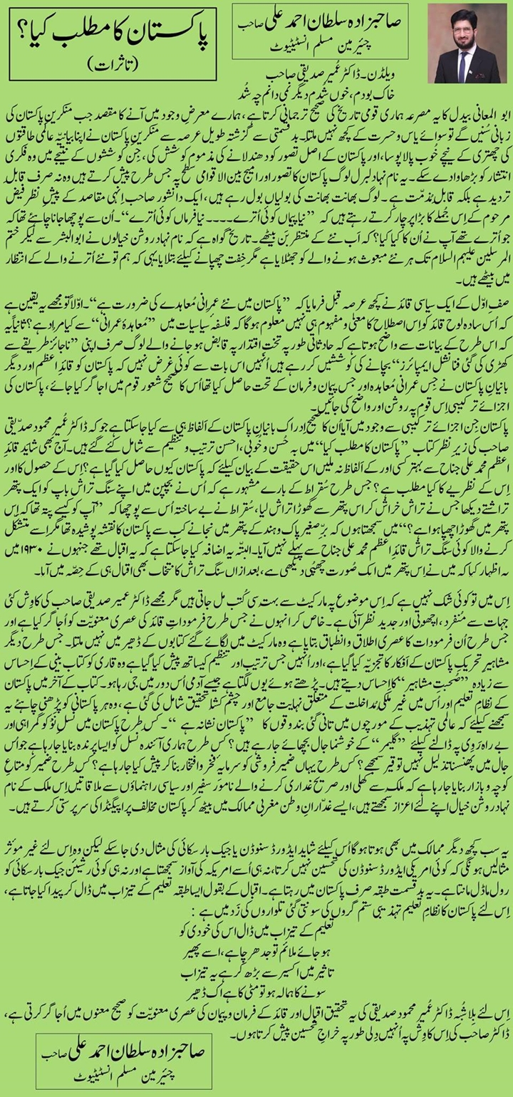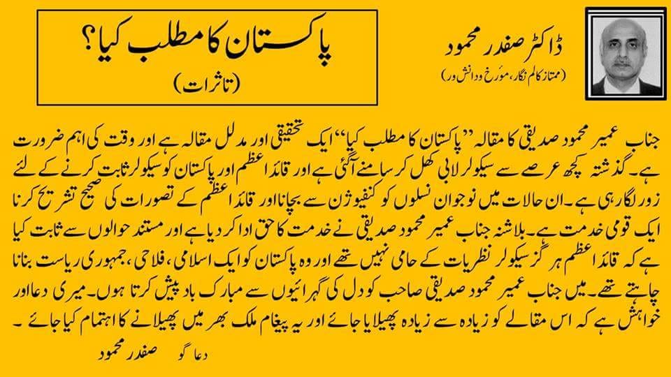 ڈاکٹر عمیر محمود صدیقی کی کتاب “پاکستان کا مطلب کیا؟” پر تاثرات