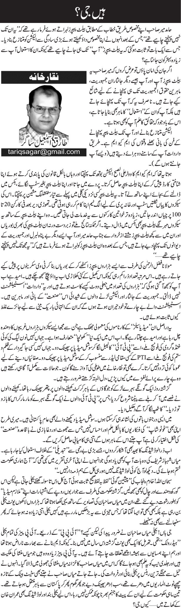 ہیں جی؟ By Editor on 9th August 2018 • ( 0 ) ہیں جی؟ طارق اسماعیل ساگر Discover more from Voice of East Subscribe to get the latest posts sent to your email. Type your email… Subscribe Share this:Tweet Click to share on Telegram (Opens in new window) Telegram Click to share on Mastodon (Opens in new window) Mastodon Click to share on Bluesky (Opens in new window) Bluesky Click to share on Threads (Opens in new window) Threads Click to share on Reddit (Opens in new window) Reddit Click to share on Nextdoor (Opens in new window) Nextdoor Pocket Click to share on WhatsApp (Opens in new window) WhatsApp Share on Tumblr Click to email a link to a friend (Opens in new window) Email Like Loading...‹ The U.N. should not remain passive in the face of human wrongs in KashmirWhen a Hindu inaugurated the Constituent Assembly of Pakistan ›Categories: Analysis, Current AffairsTags: current affairs, Democracy, Nawaz Sharif, Pakistan, Pakistan Army, Pakistani Media, PMLN, پاک افواج, پاکستان, پاکستانی سیاست, اردو Related Articles Analysing Rana Sanaullah’s Speculation That India Wants To Assassinate Imran Khan Was Arshad Sharif Assassinated By Pakistan’s US-Backed Post-Modern Coup Regime? How Bajwa And Co. Pushed Pak Army Into A Corner, But The Rivals Are Dumb And Dumber Interpreting The Pakistani Media Regulator’s Ban On Imran Khan’s Live Broadcasts
