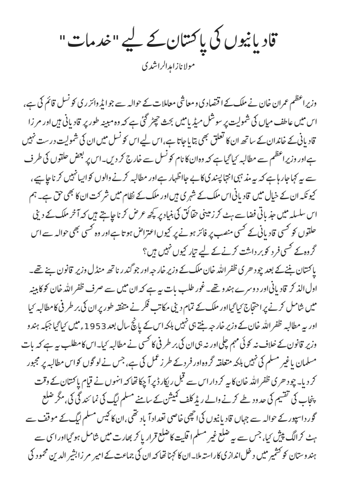 “قادیانیوں کی پاکستان کے لیے “خدمات