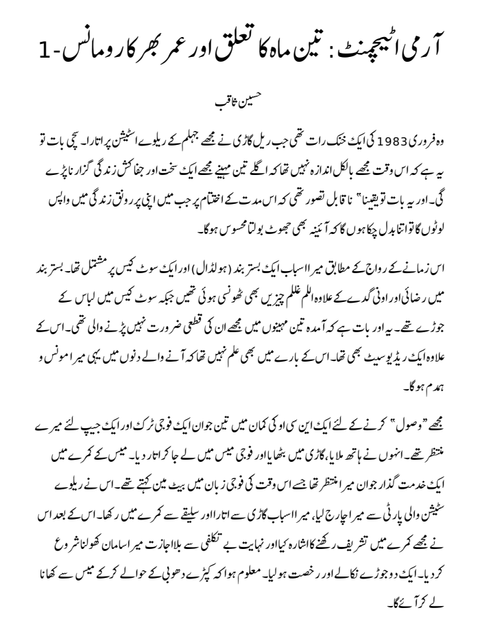 آرمی اٹیچمنٹ: تین ماہ کا تعلق اور عمر بھر کا رومانس ۔ 1