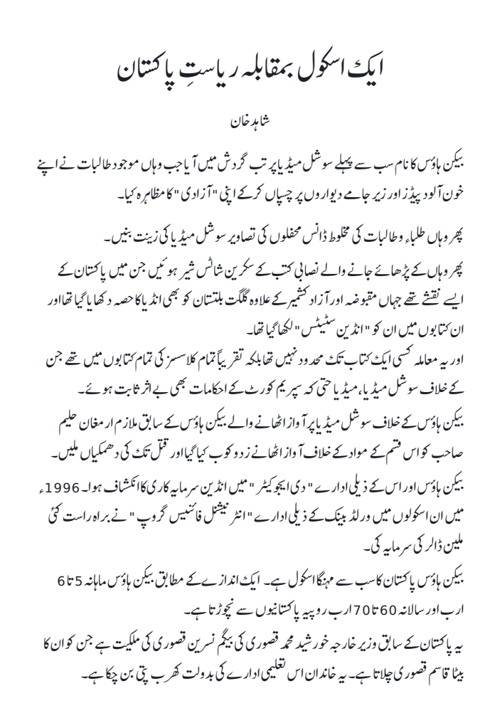 نوٹ: اگر اس حوالے سے بیکن ھاؤس کی انتظامیہ اپنا موقف دینا چاہتی ہے تو ہمیں