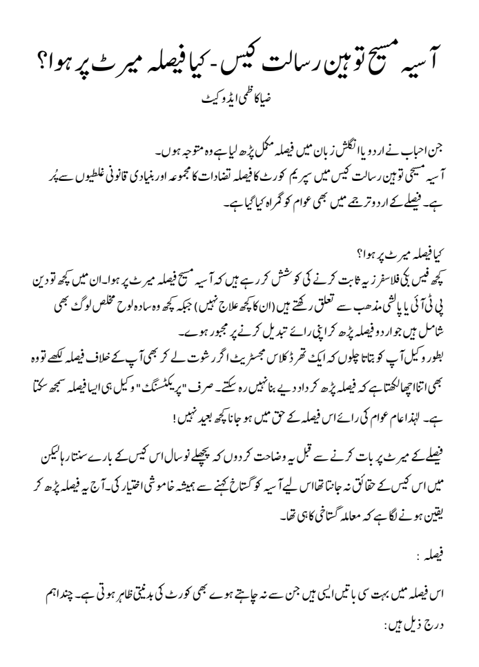 آسیہ مسیح توہین رسالت کیس – کیا فیصلہ میرٹ پر ہوا؟