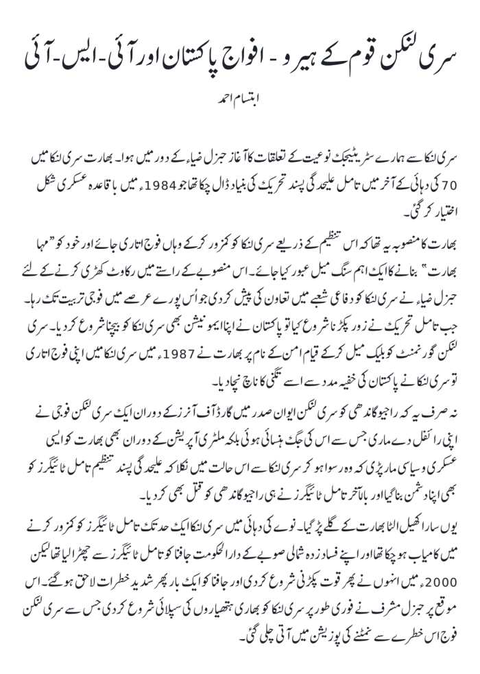 سری لنکن قوم کے ہیرو – افواج پاکستان اور آئی- ایس- آئی