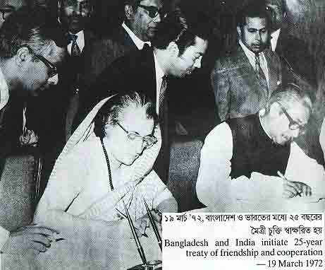 Sheikh Mujib and Indira Gandhi signs the 25 year treaty of friendship and cooperation between Bangladesh and India in Dhaka