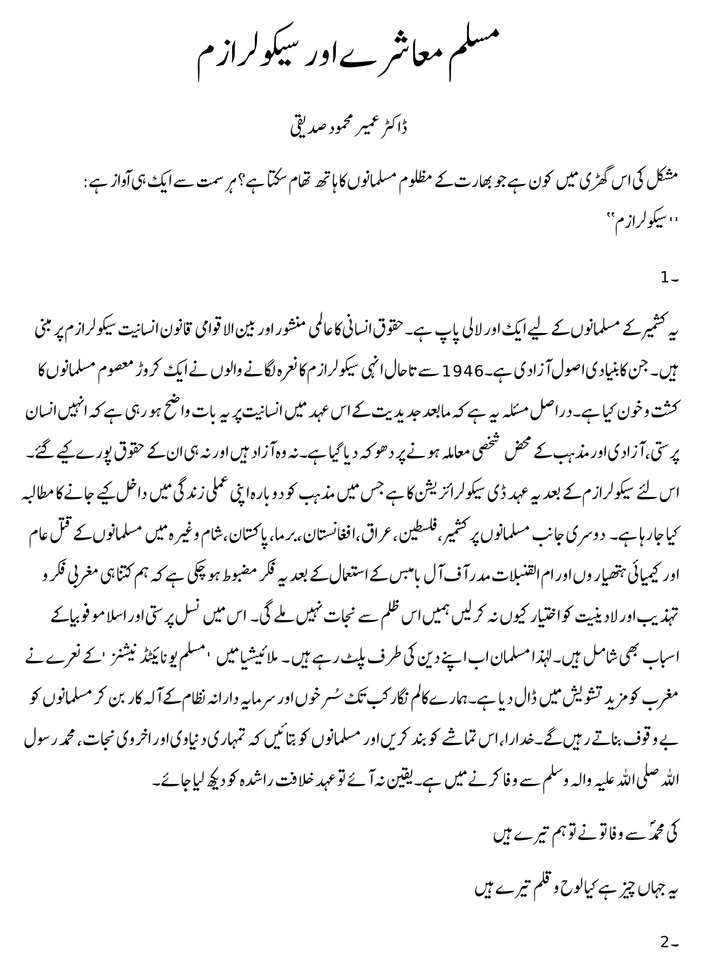 مسلم معاشرے اور سیکولرازم By Editor on 29th December 2019 • ( 0 ) مسلم معاشرے اور سیکولرازم ڈاکٹر عمیر محمود صدیقی 7 Courses in 1 – Diploma in Business Management Discover more from Voice of East Subscribe to get the latest posts sent to your email. Type your email… Subscribe Share this:Tweet Click to share on Telegram (Opens in new window) Telegram Click to share on Mastodon (Opens in new window) Mastodon Click to share on Bluesky (Opens in new window) Bluesky Click to share on Threads (Opens in new window) Threads Click to share on Reddit (Opens in new window) Reddit Click to share on Nextdoor (Opens in new window) Nextdoor Pocket Click to share on WhatsApp (Opens in new window) WhatsApp Share on Tumblr Click to email a link to a friend (Opens in new window) Email Like Loading...‹ گنگا سے پلوامہ تکPakistan’s Harvey Weinstein story ›Categories: Islam, Opinion, PakistanTags: Islam, Muslim Ummah, Muslims, Pakistan, Secularism, Urdu, مسلمان, پاکستان, اردو, اسلام Related Articles اسلام کے نام پر حاصل کیا گیا ملک موجودہ حالات غزوہ ہند کا پیش خیمہ حزب التحریر ۔ حقیقت کیا ہے؟ Two Nation Theory – What it means for Pakistan today?