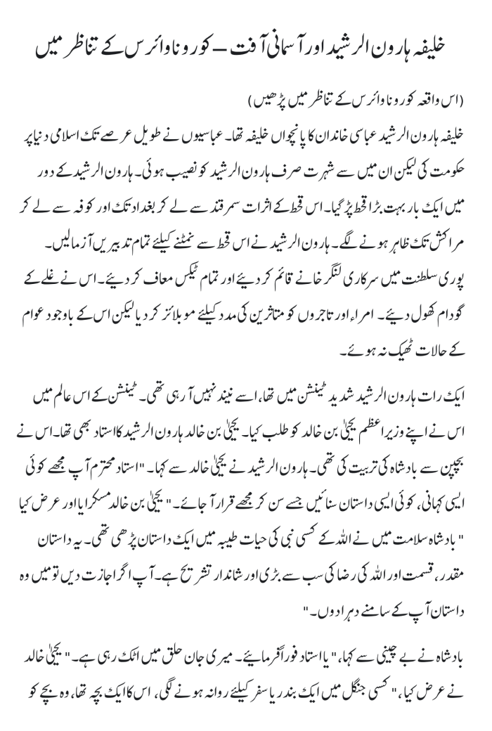 خلیفہ ہارون الرشید اور آسمانی آفت – کوروناوائرس کے تناظر میں