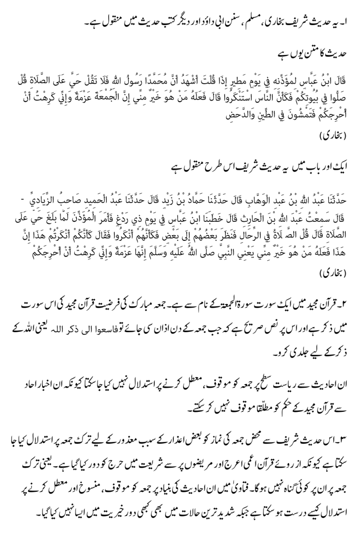 نماز جمعہ موقوف کرنے پر حضرت عبداللہ ابن عباس رضی اللہ عنہماسے مروی حدیث سے غلط استدلال