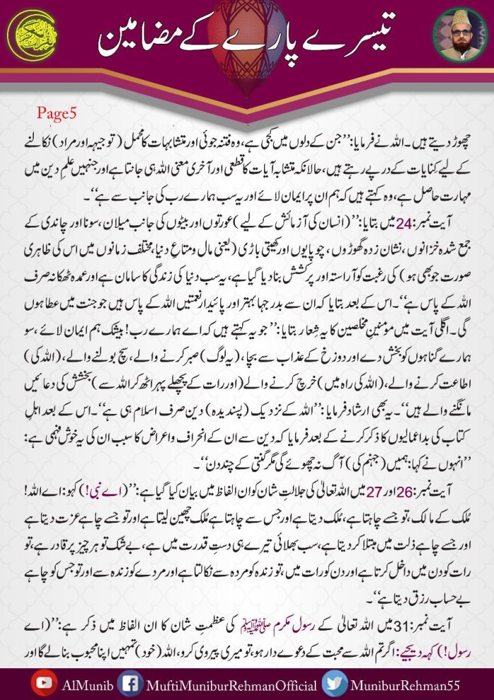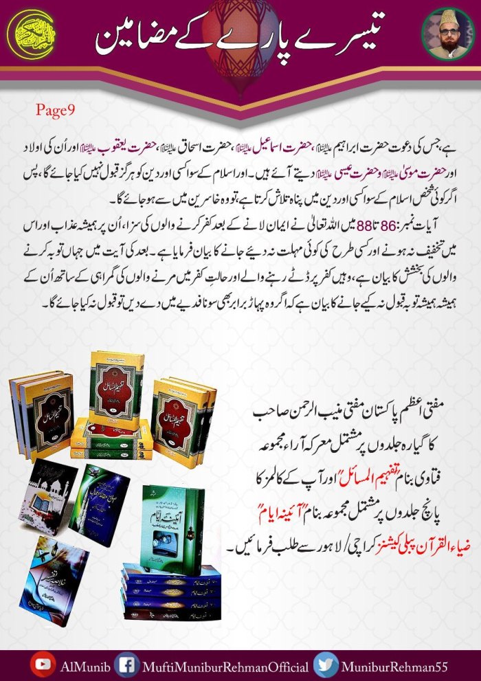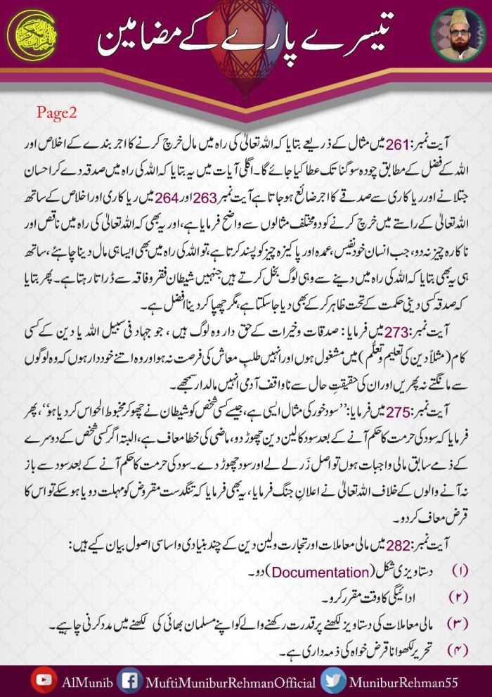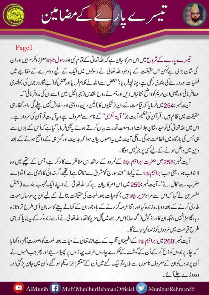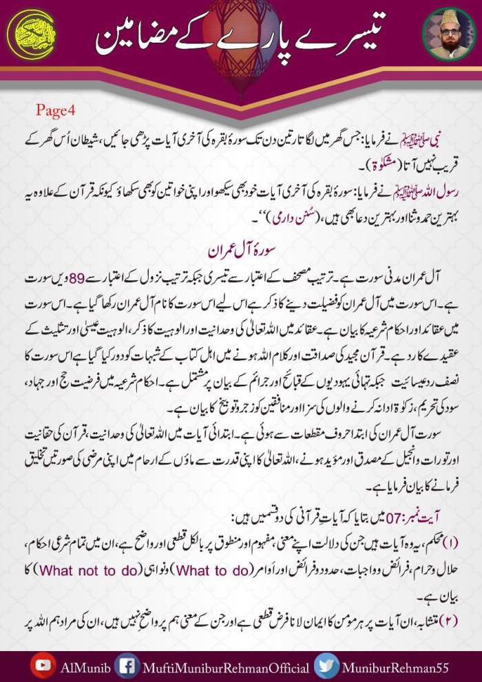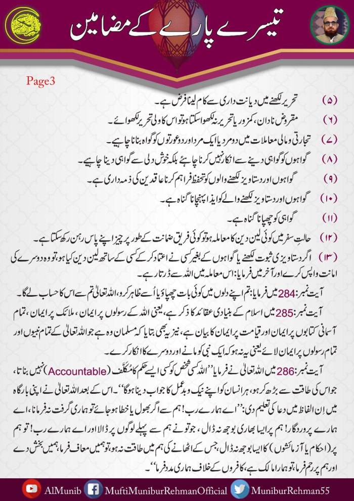 قرآن الحکیم کے تیسرے پارے کے مضامین