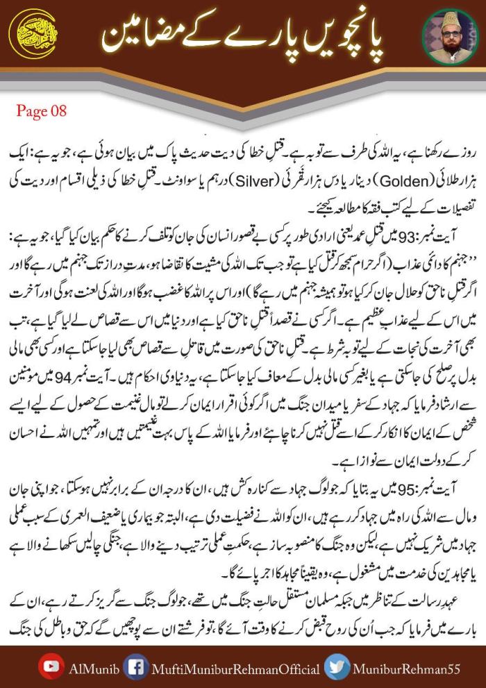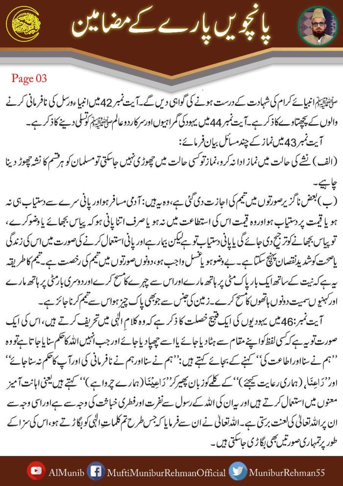 قرآن الحکیم کے پانچویں پارے کے مضامین