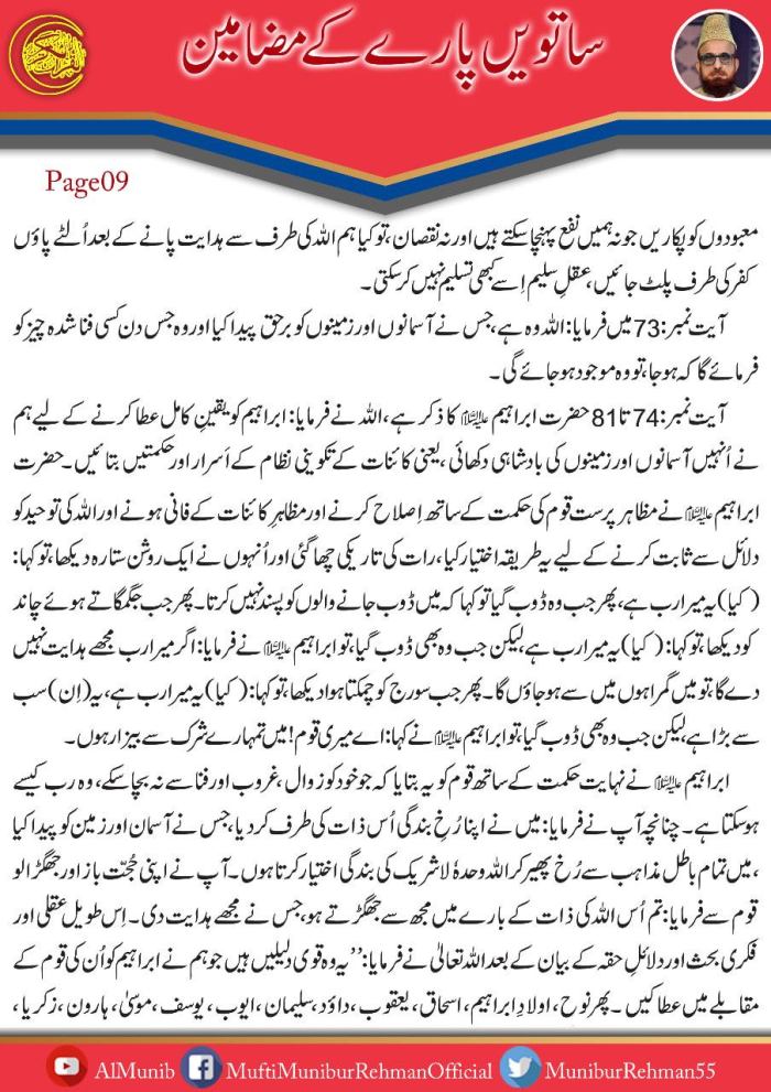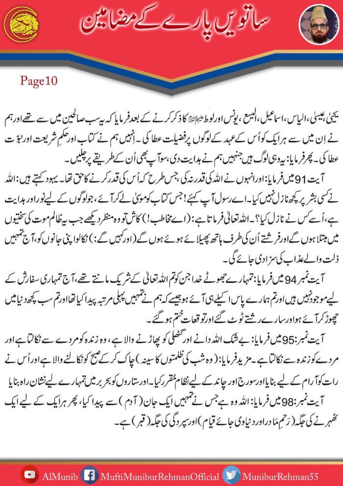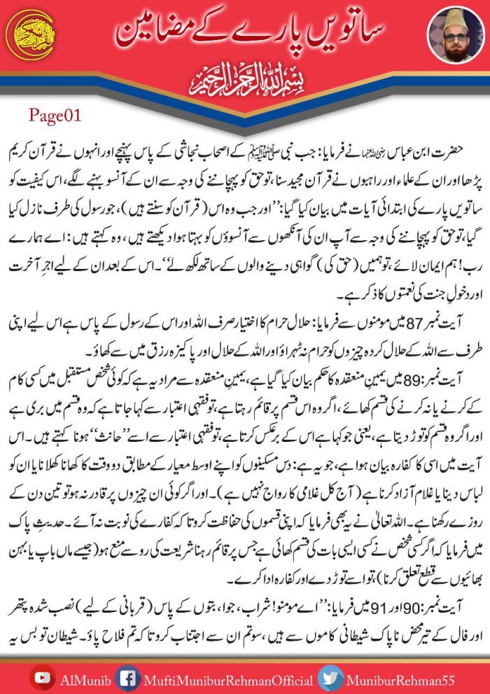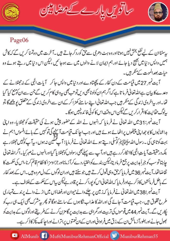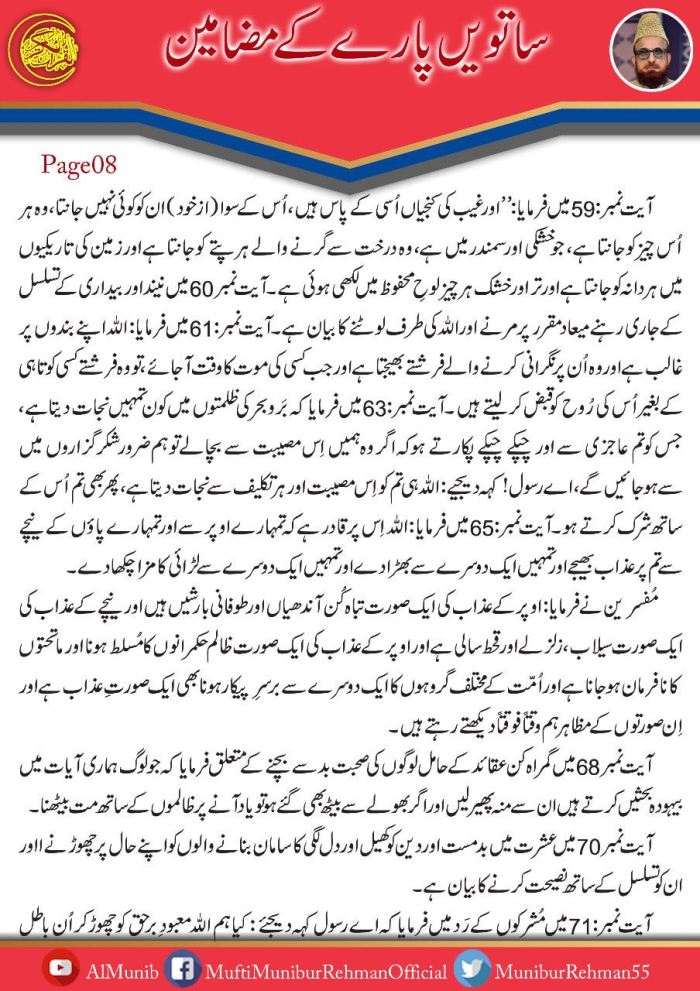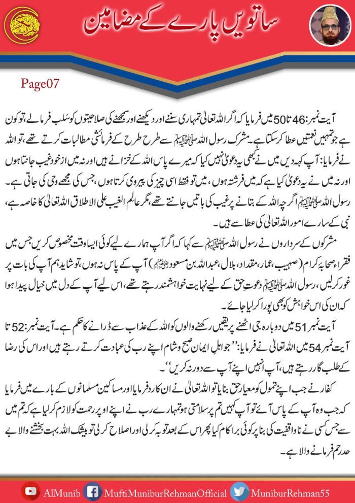 قرآن الحکیم کے ساتویں پارے کے مضامین